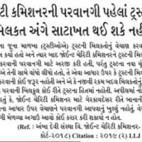News Rules & Policy ચેરિટી કમિશ્નરની પૂર્વ પરવાનગી પહેલા ટ્રસ્ટની મિલ્કતોનો સાટાખત કે અન્ય કરાર અને એમ.ઓ.યુ કરી શકાય નહીં Sep 16, 2019