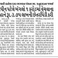 Land / Property Frauds બિપિન પટેલે બંગલો ૧ કરોડ માં વેચવાના બહાને રૂ ૩ ૭૫ લાખની છેતરપિંડી કરી Aug 30, 2020