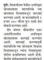 Action on unauthorized construction in Shivajinagar