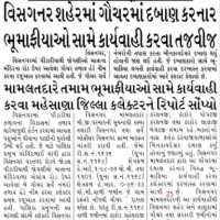 વિસંગનર શહેરમાં ગૌચરમાં દબાણ કરનાર ભૂમાફિયાઓ સામે કાર્યવાહી કરવા તાજવીજઃ