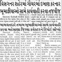 વિસંગનર શહેર માં ગૌચરમાં દબાણ કરનાર ભૂમાફિયાઓ સામે કાર્યવાઈ કરવા તજવીજ