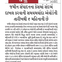 News Rules & Policy જમીન સંપાદનના કેસમાં સંદર્ભ દાખલ કરવાની સમયમર્યાદા એવાર્ડની તારીખથી ૬ મહિનાની છે May 15, 2019