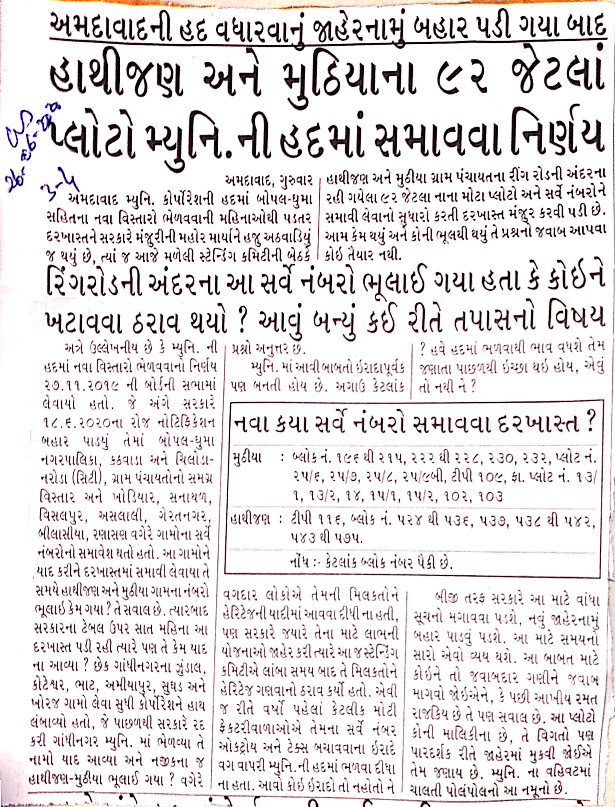 Post navigation અમદાવાદ – ઔડા વિસ્તારમાં વધુ સાત ટાઉન પ્લાનિંગ સ્કીમને સરકારની મંજૂરી મહેસાણા મેર્કેટયાર્ડ સાઈડની દીવાલ અંદર કરી ટી પી – ૩ તરફનો રસ્તો પહોળો કરાશે