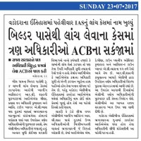 Land / Property Frauds News બિલ્ડર પાસેથી લંચ લેવાના કેસમાં ત્રણ અધિકારીઓ ACB ના સંકજામાં Jul 23, 2017