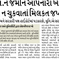 ઉ.ગુ. યુનિ. ને જમીન આપનારા ખેડૂતોને 25 વર્ષે વળતર ન ચુકવતા મિલકત જપ્તિનો હુકમ