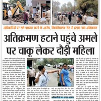 Woman rushed with knife on staff to remove encroachment
